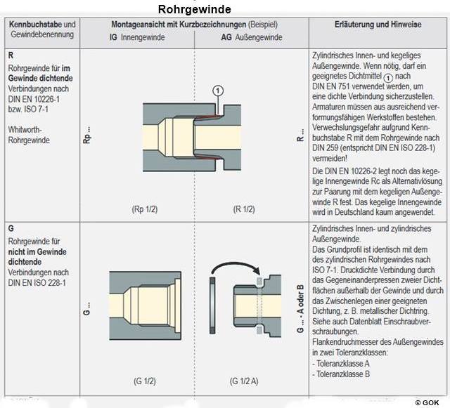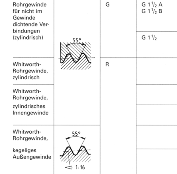 | Bezeichnung | Rp 1" | R 1" | G 1" | G 1" |