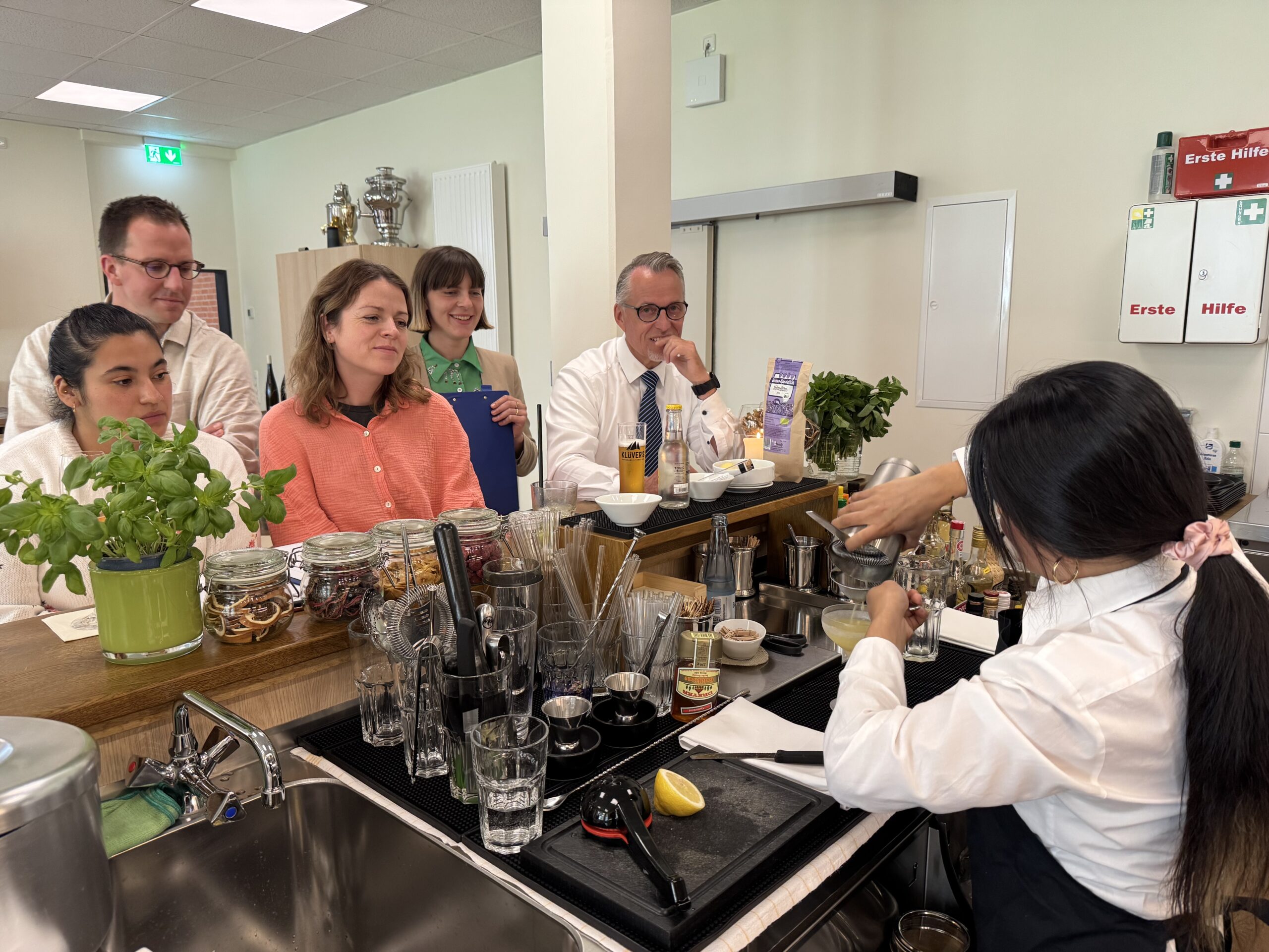 Innerhalb der Prüfung bewiesen die Auszubildenden ihre vertieften Expertisen rund um die Barkunde und zauberten den Prüfern und Gästen auch durch eigene Kreationen ein Lächeln ins Gesicht.