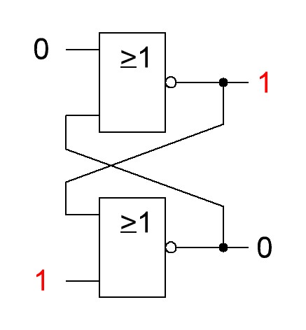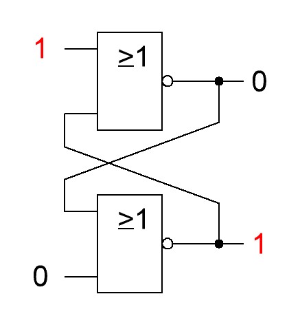 \[\begin{array}{l}Q = \overline R \cdot (S + Q)\\\overline Q = \overline S \cdot (R + \overline Q )\end{array}\]