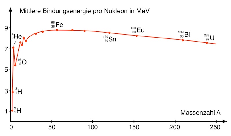 Das Diagramm veranschaulicht, dass man durch Fusion von leichten Kernen zu schweren Kernen Energie gewinnen kann. Erläutern Sie das!